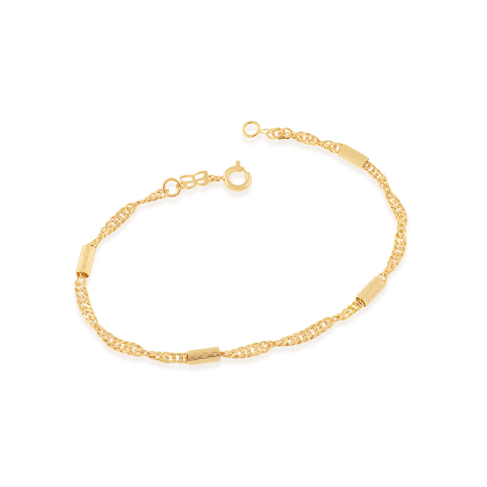 The bracelet features a synthetic green gemstone, carefully selected for its brilliance and vibrant color, complementing the gold tone perfectly.