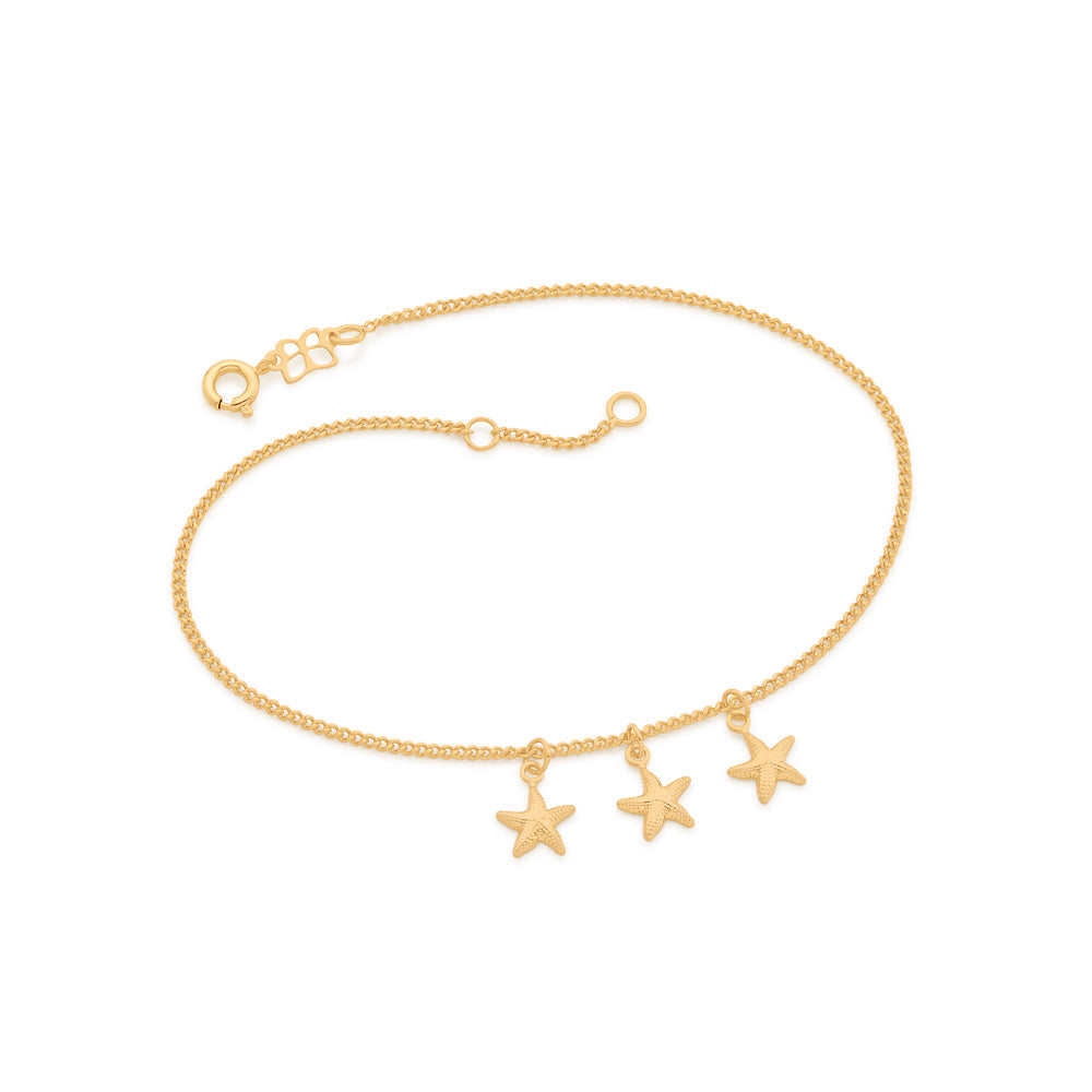 Our capsule collection, beach collection, is full of pieces that are full of inspiration from the beach! from seashells to star fishes, this collection has something for everyone. pieces with pearls add a sophisticated touch while unique designs bring modernity to the collection. gold plated anklet composed of a link chain measuring 25cm with three (3) star fish pendants. | â size: 25cm - can be adjusted to 23cm. | material: 18k gold plated.â (licensed jewelry capsule collection gio antonelli 4th edition)"