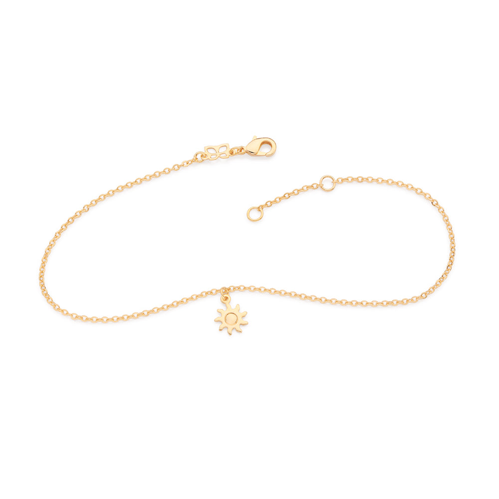 Anklet composed by a cable link chain and a sun pendant. size: 25cm - can be adjusted to 23cm (9.84in - can be adjusted to 9.05in). exclusive of ana hickmann collection
