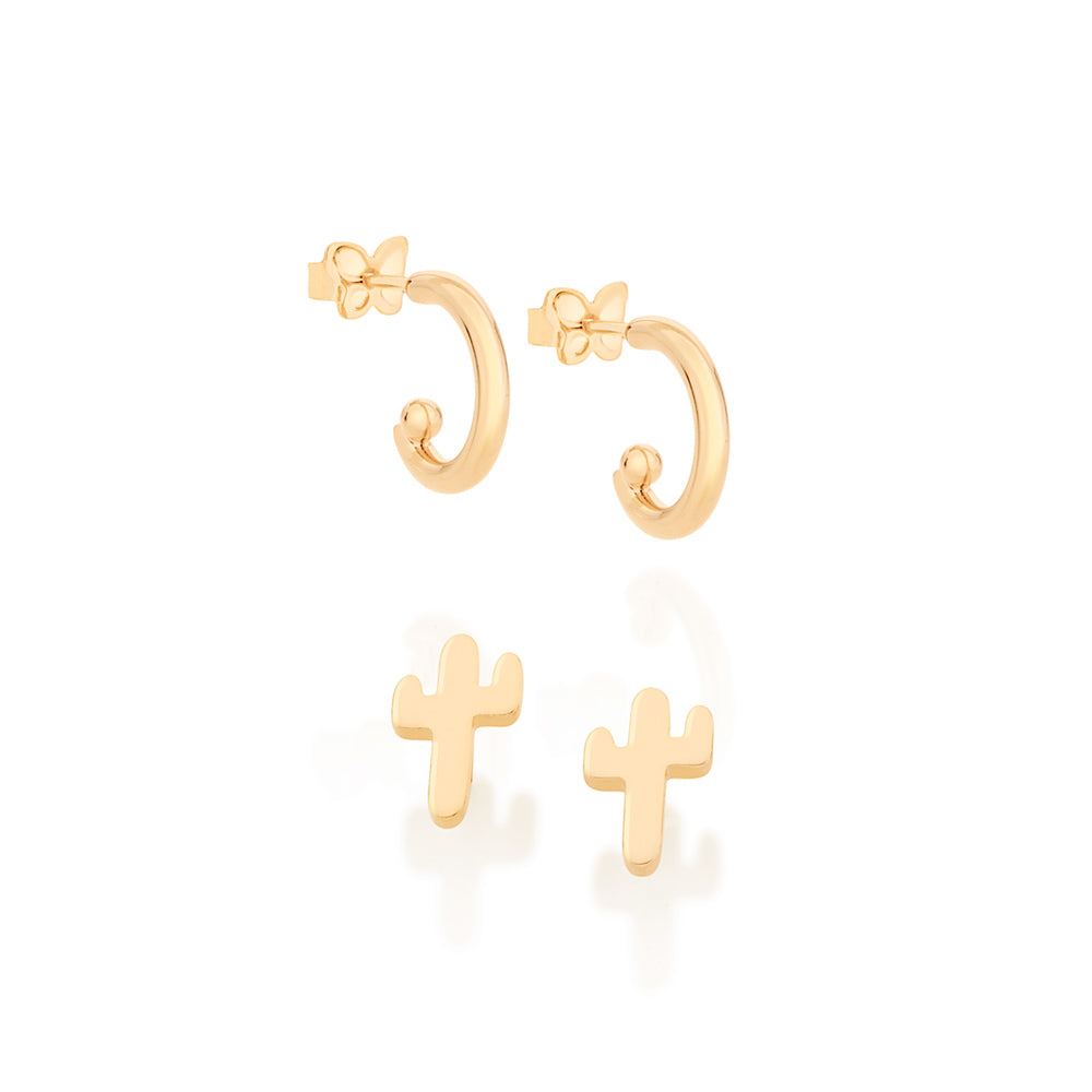 Rommanel's newest collection by Ana hickmann brings the beauty and glamour of the caribbean waters. inspired by the tropical climate and vibrant colors of the caribbean, the collection features pieces that convey the magical, joyful and contagious energy of curaã‡ao, a dutch island located in the caribbean sea. gold plated earring kit featuring a pair of small hoops for the first hole and a cactus plant for the second hole.â | material: 18k gold plated.â | also available in rhodium. (licensed jewelry collection Ana hickmann 21st edition)"