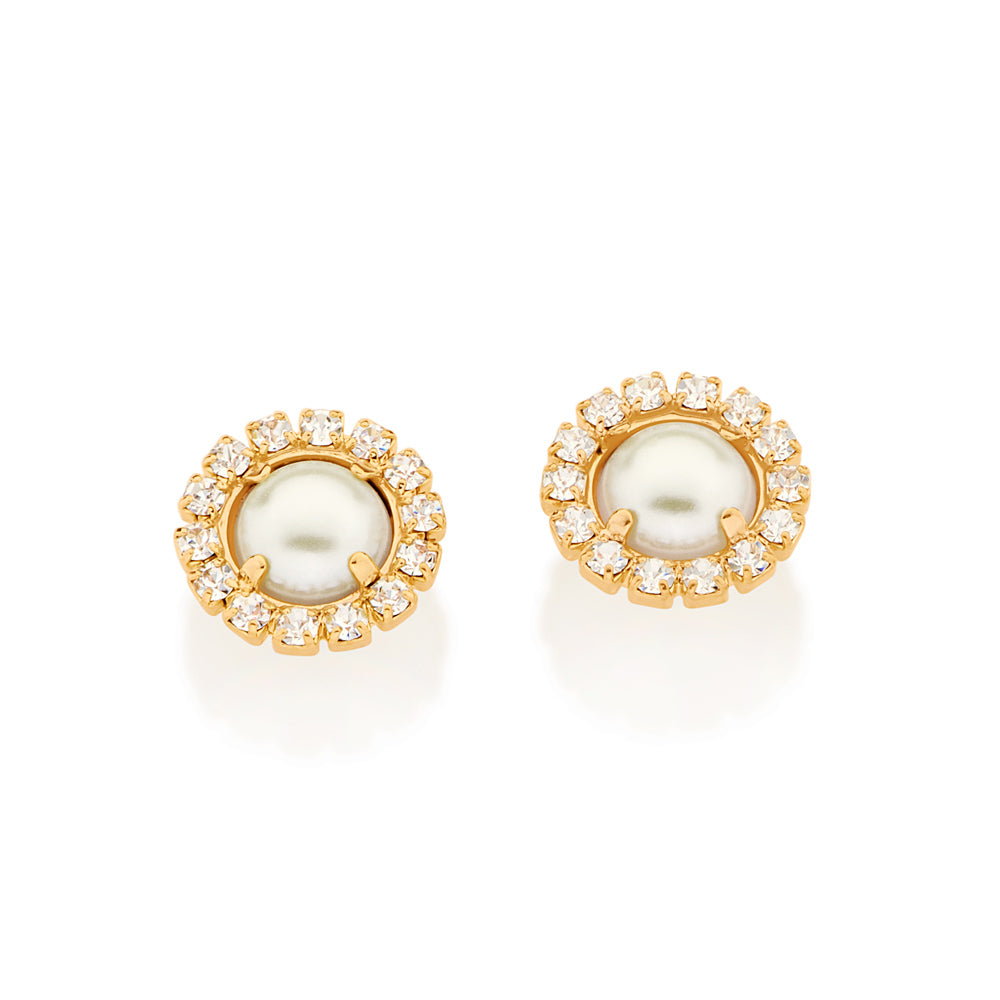 GOLD EARRING WITH PEARL AND CRYSTAL