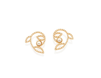 GOLD EARRING WITH PEARL AND ZIRCONIA