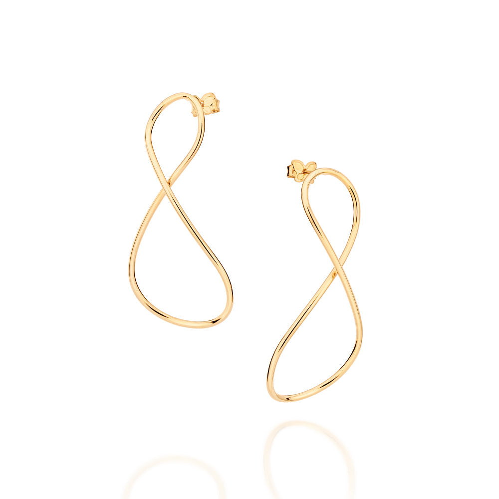 Gold plated earring in the shape of an infinity sign. size: 4.6cm x 2.3cm (1.81in x 0.91in).