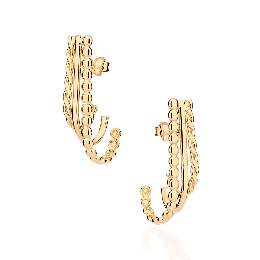 18k gold-plated hoop earrings composed of three (3) bands with different textures. size: 3.9cm x 1.5cm (1.53in x 0.59in).