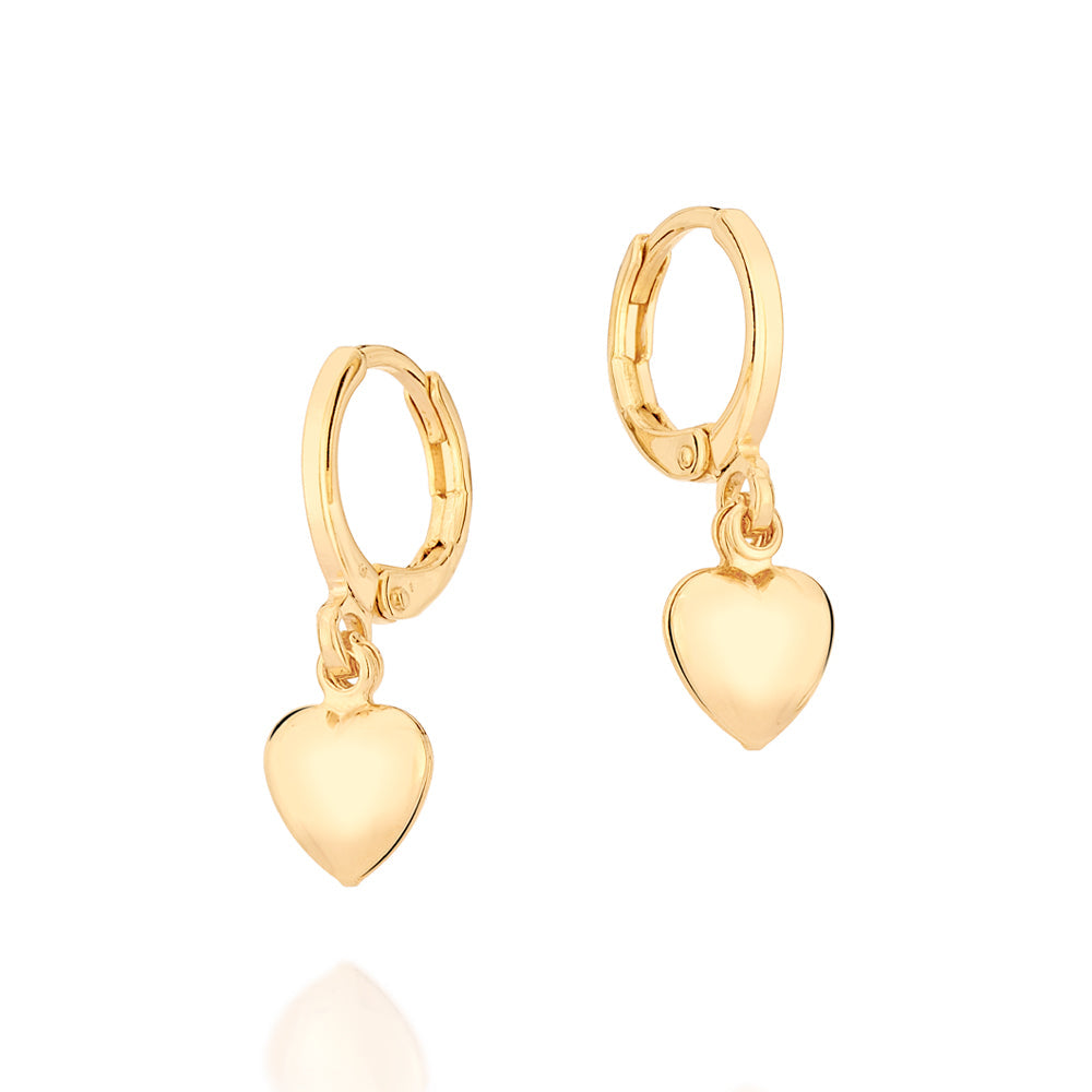 Gold plated huggie earrings with a solid heart pendant. size: 2.3cm x 0.7cm . 1.1cm in diameter.
