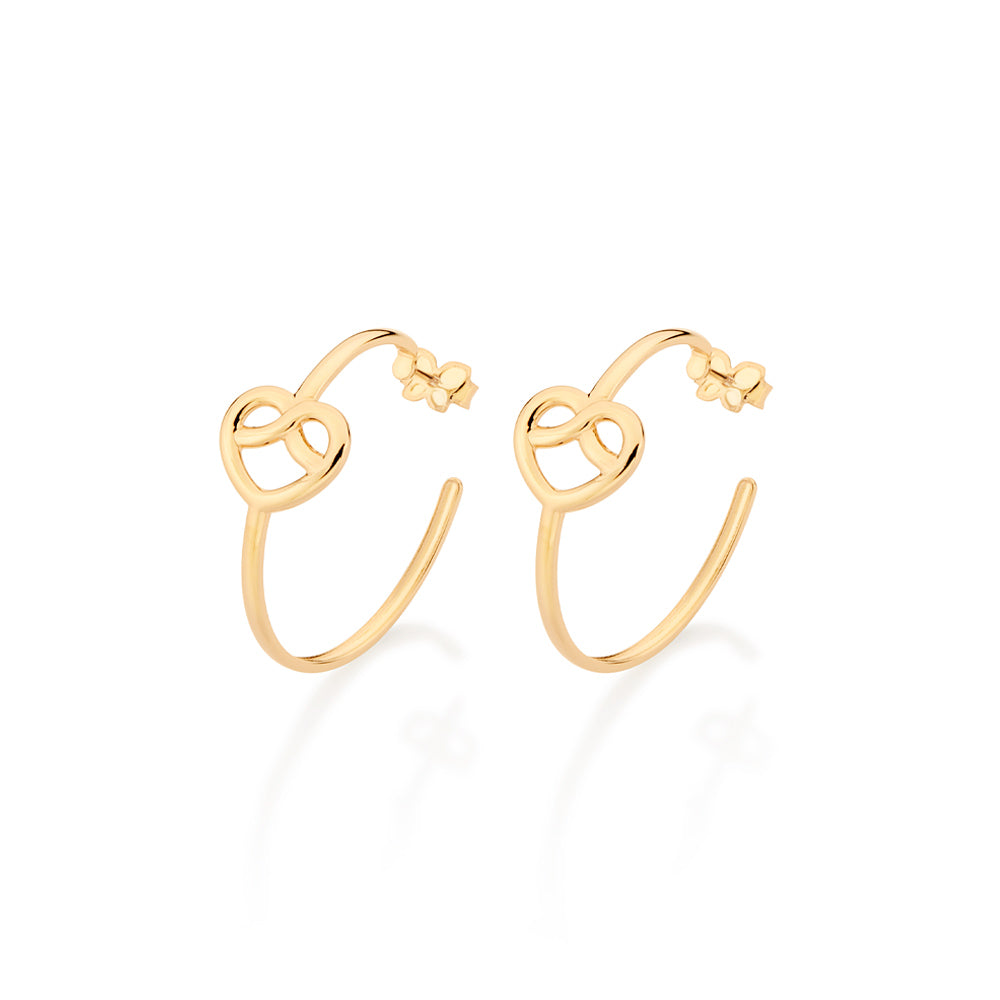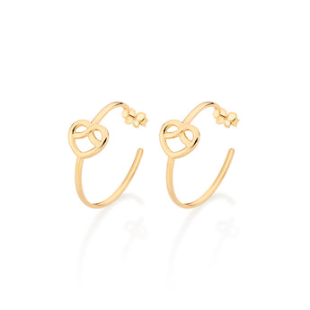 Gold plated hoop earrings composed of a heart knot that resembles an infinity sign size: 3cm (1.18in) in diameter.