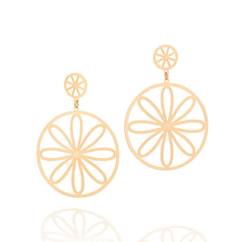 Rommanel's newest collection by Ana hickmann brings the beauty and glamour of the caribbean waters. inspired by the tropical climate and vibrant colors of the caribbean, the collection features pieces that convey the magical, joyful and contagious energy of curaã‡ao, a dutch island located in the caribbean sea. gold plated earrings featuring a small circle representing an orange slice as the base and a larger one as the body of the earring. | size: 6.5 x 4.6cm. | material: 18k gold plated.â (licensed jewelry collection Ana hickmann 21st edition)"