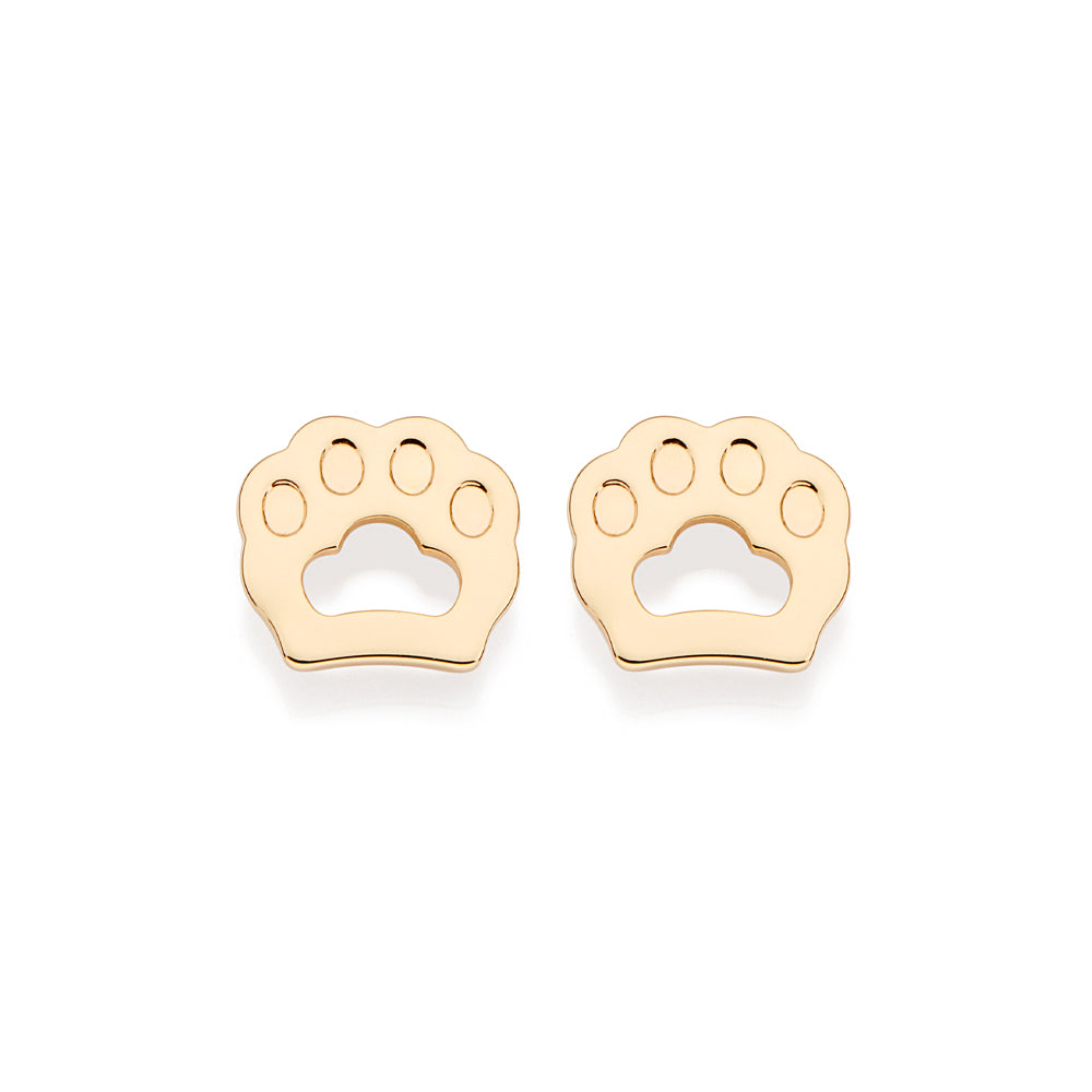 18k gold-plated stud earrings in the shape of a pet’s paw with a hollow center. size: 0.7cm x 0.7cm (0.27in x 0.27in).