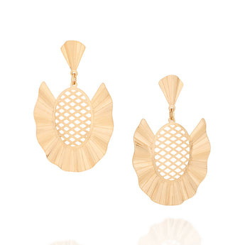 Rommanel's newest collection by Ana hickmann brings the beauty and glamour of the caribbean waters. inspired by the tropical climate and vibrant colors of the caribbean, the collection features pieces that convey the magical, joyful and contagious energy of curaã‡ao, a dutch island located in the caribbean sea. gold plated statement earring in the shape of an abstract pineapple. | size: 5 x 3.3cm. | material: 18k gold plated.â (licensed jewelry collection Ana hickmann 21st edition)"
