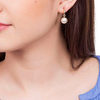 Each earring is accented with a luminous 10 synthetic pearl, ensuring a beautiful, substantial glow. This simple yet luxurious pairing offers a refined touch that is perfect for any occasion, from the office to an evening out.