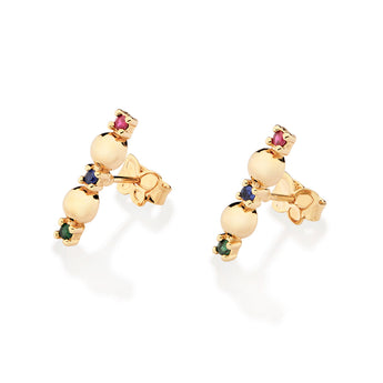 18k gold-plated earrings composed of six (6) colorful zirconias measuring 1.75mm each and four (4) spheres. size: 1.6cm x 0.6cm (0.62in x 0.23in).