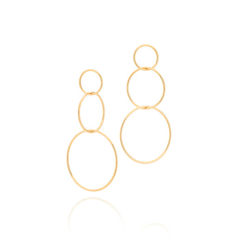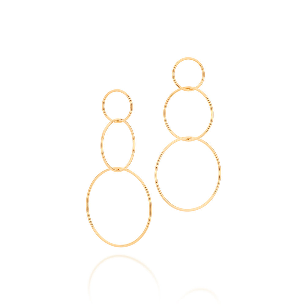 Rommanel presents the power to transform, an annual collection that reinforces your purpose and celebrates Rommanels 35th birthday. with jewelry that tells a story and translates Rommanels essence, the collection brings you pieces full of meaning. gold plated earrings composed of three (3) circles in different sizes on top of one another. | size: 70mm x 37mm. | material: 18k gold plated. "
