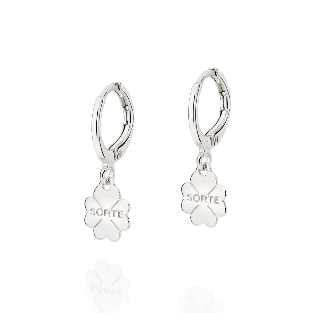 PLATINUM FOUR LEAF CLOVER “SORTE” (LUCK) HUGGIE EARRINGS