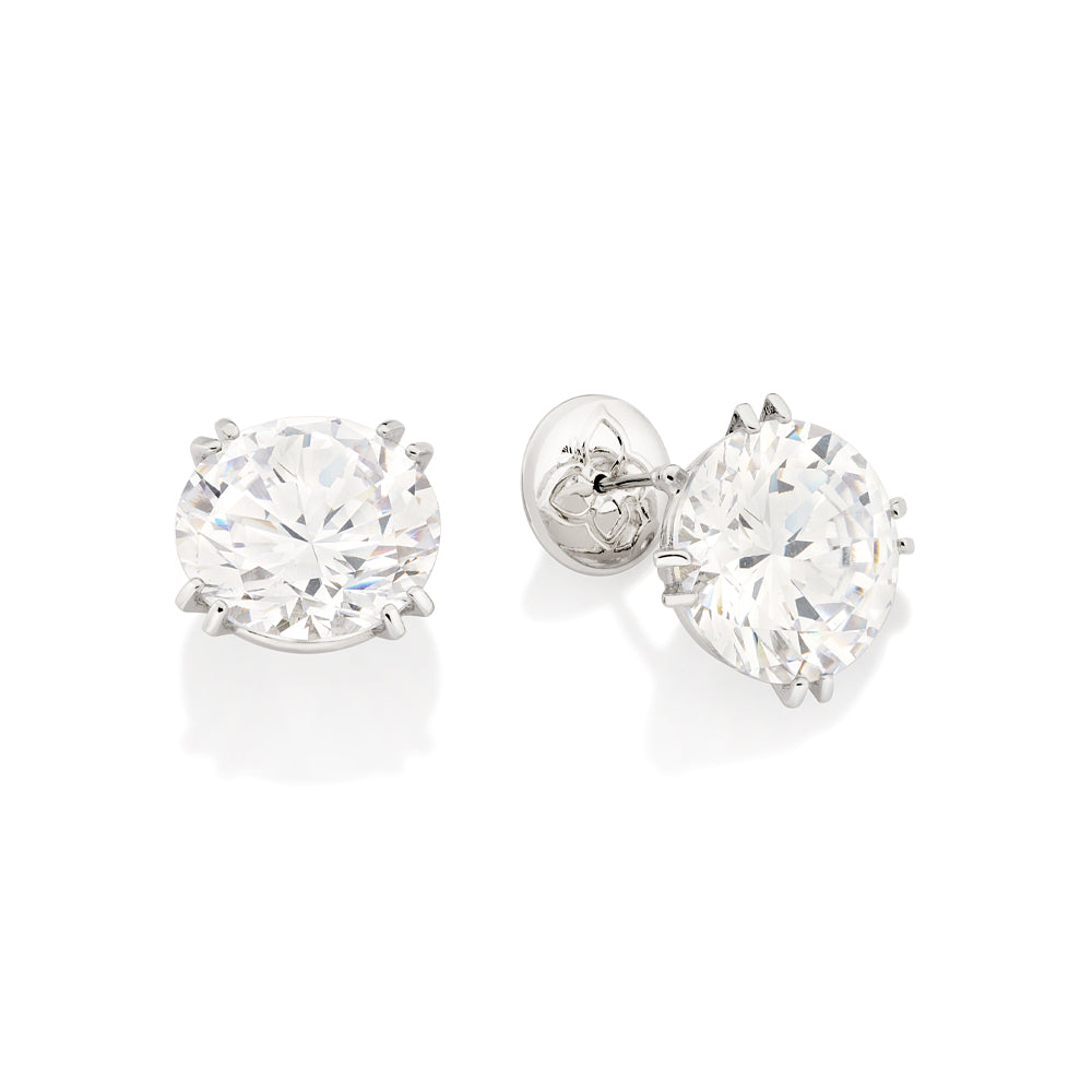 Platinum button earring composed of two 2 white zirconias measuring 15mm. exclusive licensed jewelry of ""giovanna antonelli fashion jewelry"" collection "