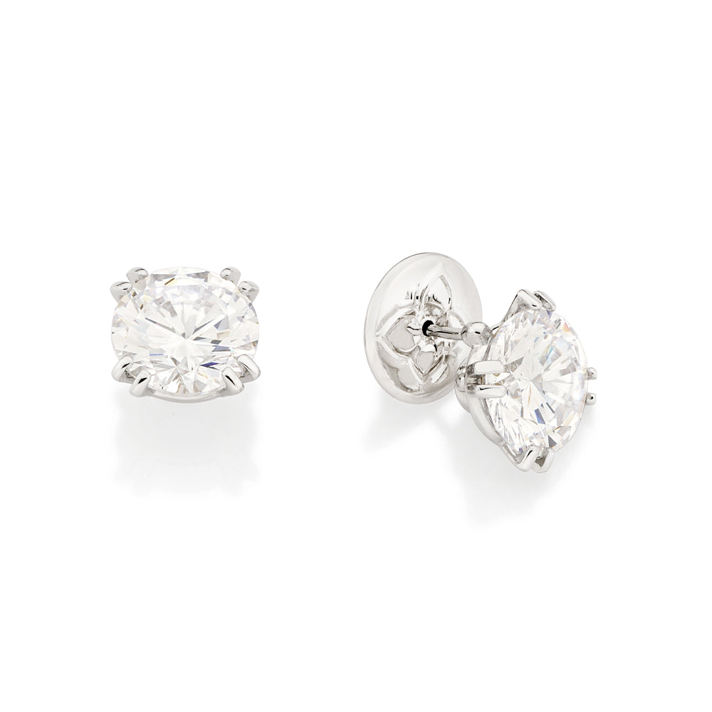 Platinum small button earring composed of two 2 white zirconias measuring 10mm. exclusive licensed jewelry of ""giovanna antonelli fashion jewelry"" collection "