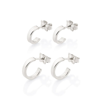 Platinum huggie earrings kit composed of 2 sets with a semi-thick band in different sizes. exclusive licensed jewelry of ""ana hickmann fashion jewelry"" collection"