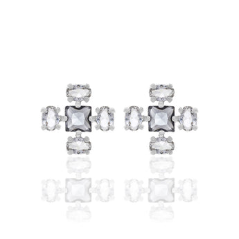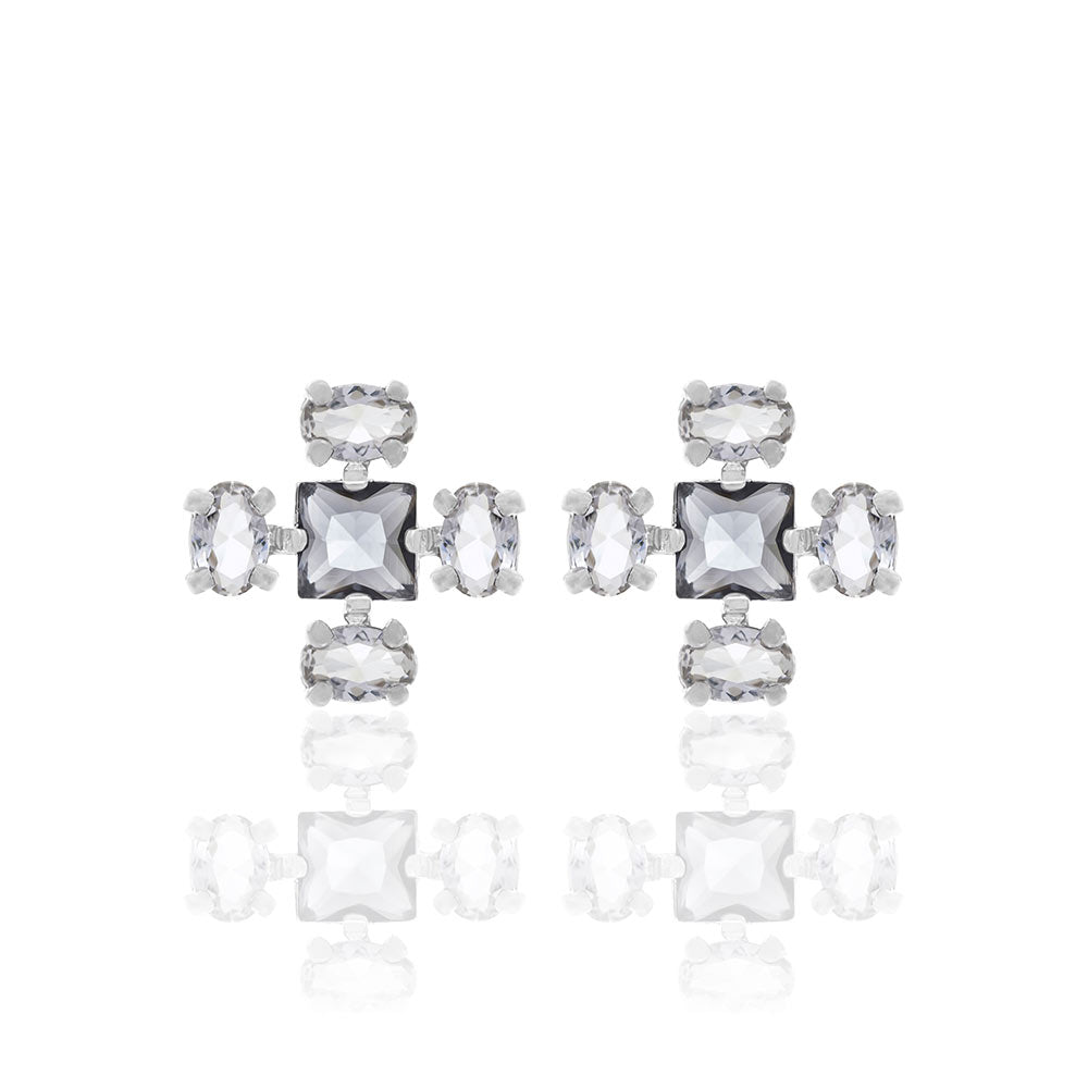 RHODIUM PLATED EARRING WITH CRYSTAL