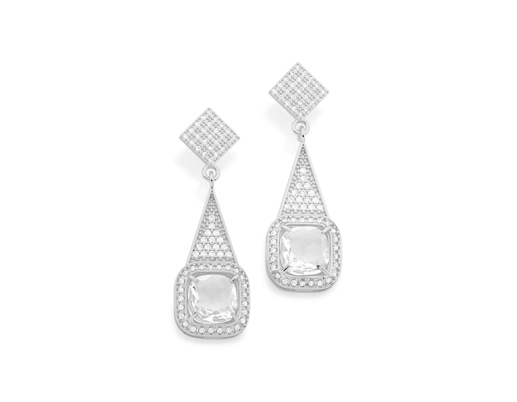 RHODIUM PLATED EARRING WITH CRYSTAL AND ZIRCONIA