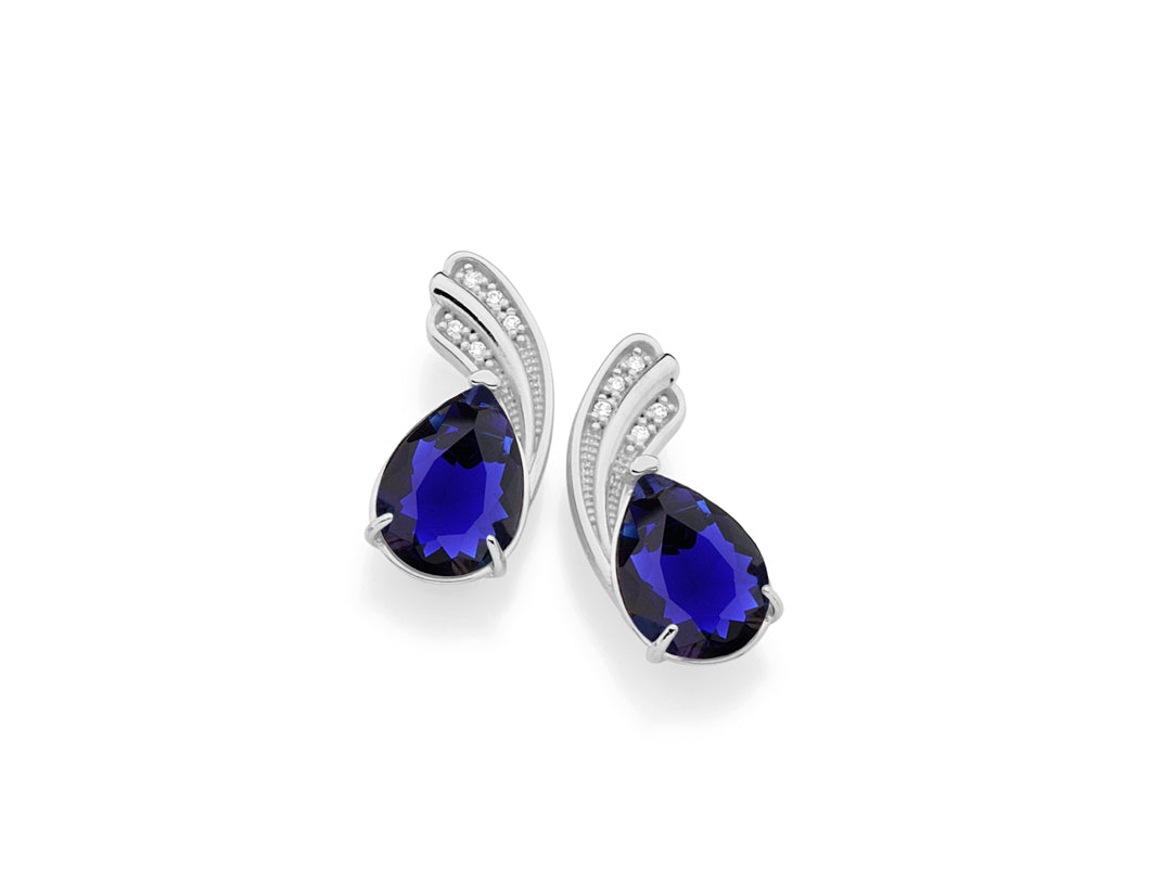 RHODIUM PLATED EARRING WITH CRYSTAL AND ZIRCONIA