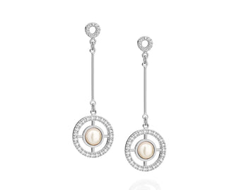 RHODIUM PLATED EARRING WITH PEARL AND ZIRCONIA