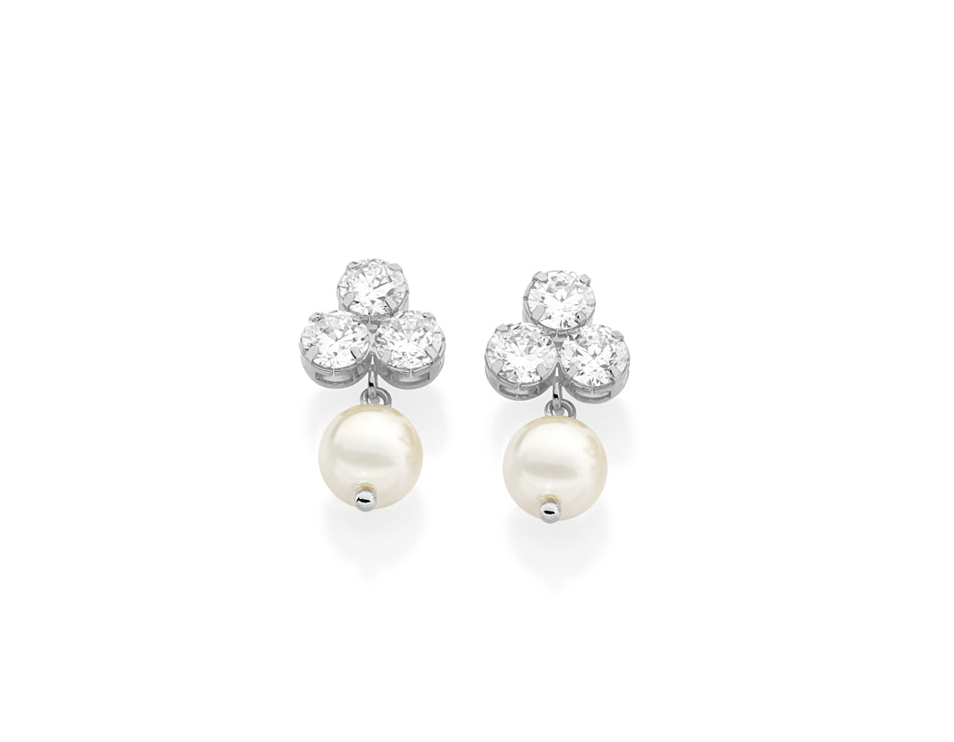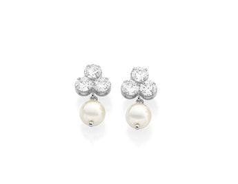 RHODIUM PLATED EARRING WITH PEARL AND ZIRCONIA