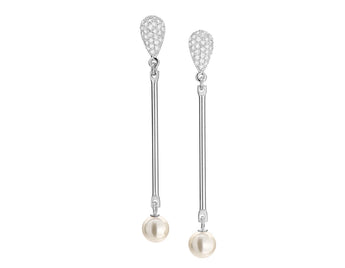 RHODIUM PLATED EARRING WITH PEARL AND ZIRCONIA