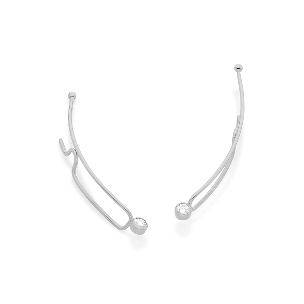 RHODIUM PLATED EARRING WITH ZIRCONIA