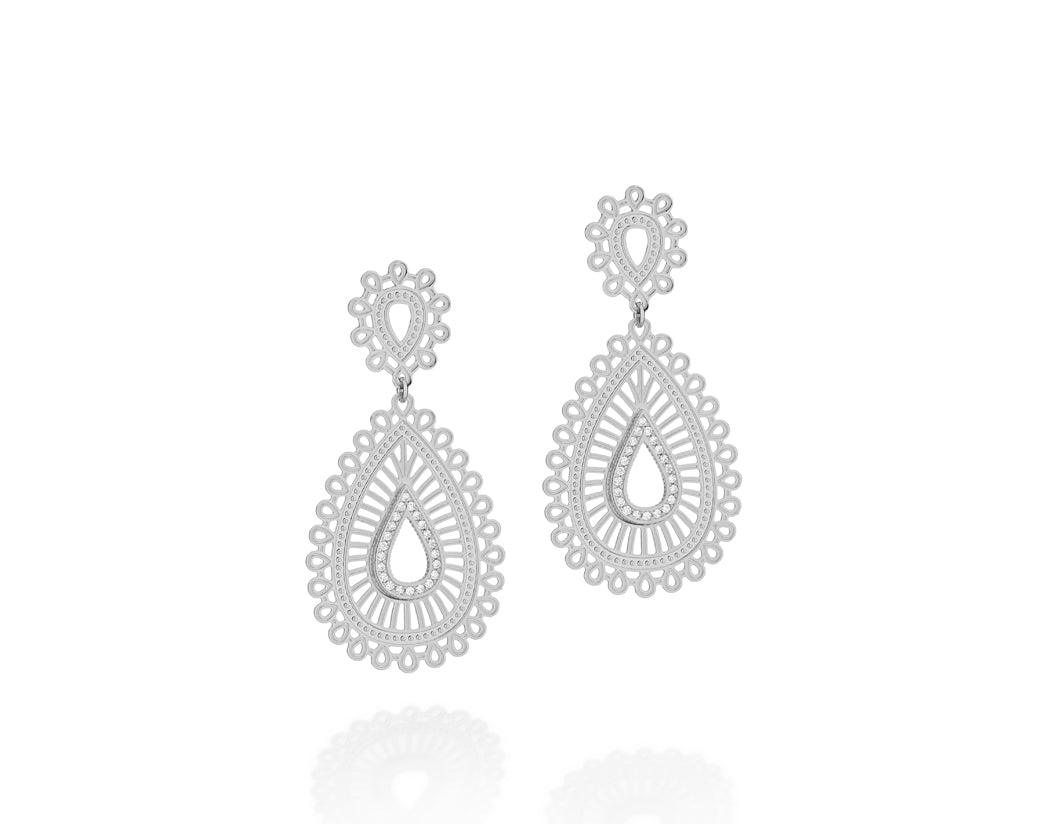 RHODIUM PLATED EARRING WITH ZIRCONIA
