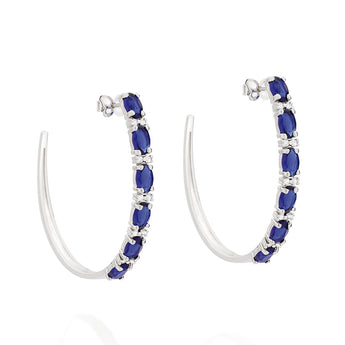 Rommanels dream collection by giovanna antonelli has as its main inspiration the world of dreams. as the name suggests, the royalty line was inspired by queens and princesses. to represent this majestic universe, we brought some of high jewelry’s classic shapes and colored zircon – inspired by precious stones. rhodium hoop earring measuring 4cm in diameter studded with six (6) blue oval crystals measuring 4x6mm alternating with ten (10) white zirconias measuring 1.25mm each. this unique hoop earring is the missing piece in your jewelry collection. | size: 4cm in diameter. | material: rhodium plated. | also available in gold plated. (licensed jewelry collection giovanna antonelli 12th edition)"
