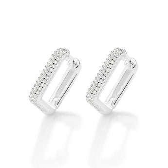 Silver 925 square huggie earrings studded by ninety-two (92) zirconias measuring 0.8mm each. size: 1.4cm x 1.4cm (0.55in x 0.55in).
