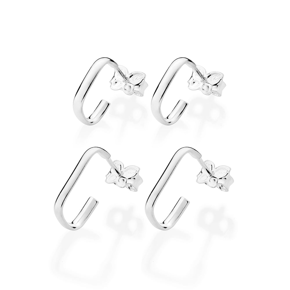 Silver 925 rectangle hoop earrings kit composed of a small and large pair. size: 1.1cm and 1.5cm (0.43in and 0.59in).