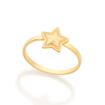 Kids club is Rommanel's newest collection with our little ones as our main inspiration. for this collection, we played around with colorful, fun, and meaningful elements to create the perfect fantasy story. discover our newest collection, kids club, and fall in love with it. kid's skinny ring in the shape of a star. | material: 18k gold plated. "