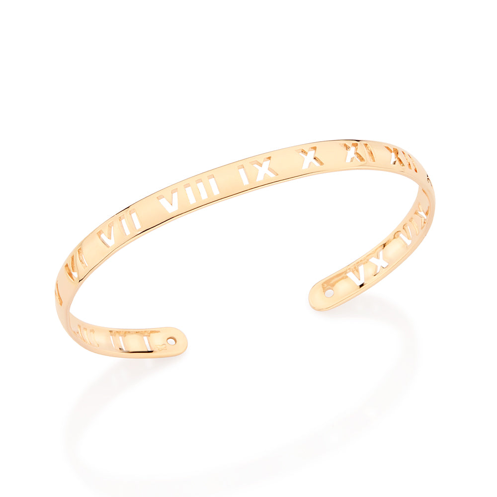 GOLD mensS ROMAN NUMERALS CUFF BRACELET