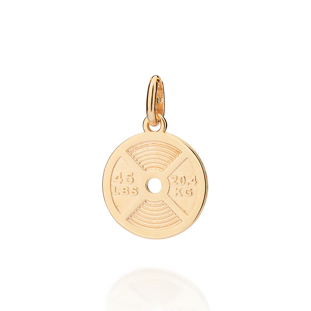 18k gold-plated men's pendant in the shape of a 20.4kg/45lbs weight. size: 2.7cm x 1.8cm (1.06in x 0.71in).