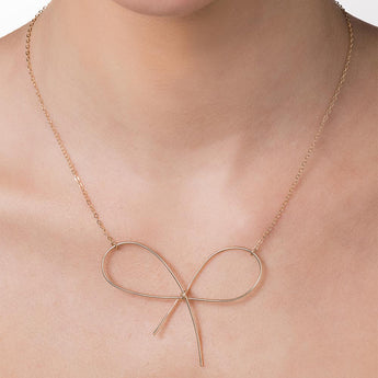 The centerpiece is a beautifully detailed hollow-out bow pendant, offering a sophisticated and whimsical accent that subtly catches the light.