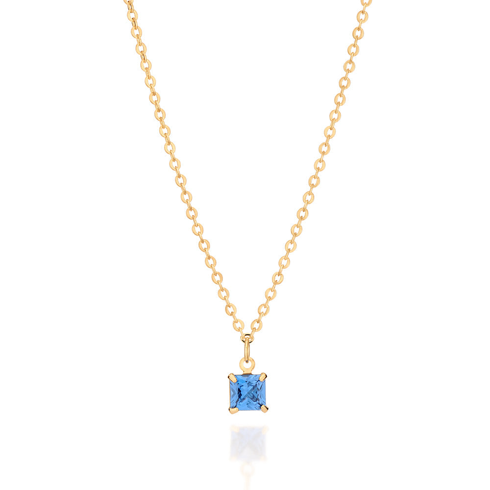 Gold plated necklace composed of a cable link chain and 1 blue zirconia measuring 5x5mm. size: 50cm - can be adjusted to 45cm