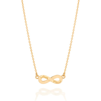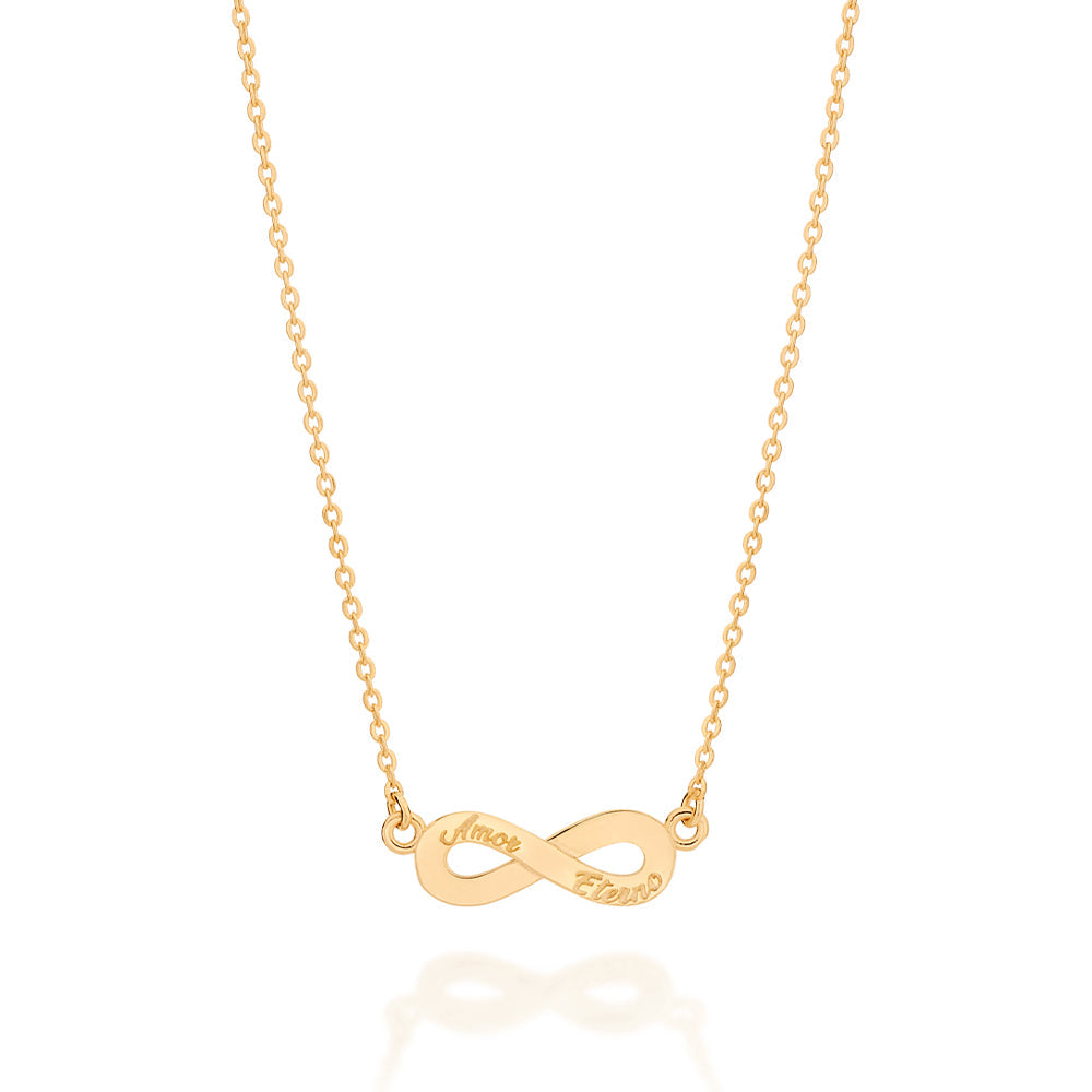 Rommanel presents the power to transform, an annual collection that reinforces your purpose and celebrates Rommanels 35th birthday. with jewelry that tells a story and translates Rommanels essence, the collection brings you pieces full of meaning. gold plated necklace composed of a curb chain measuring 45cm - can be adjusted to 42cm - featuring an infinity sign pendant at the center with the words “amor eterno” (forever love). | size: 45cm - can be adjusted to 42cm. | material: 18k gold plated. "