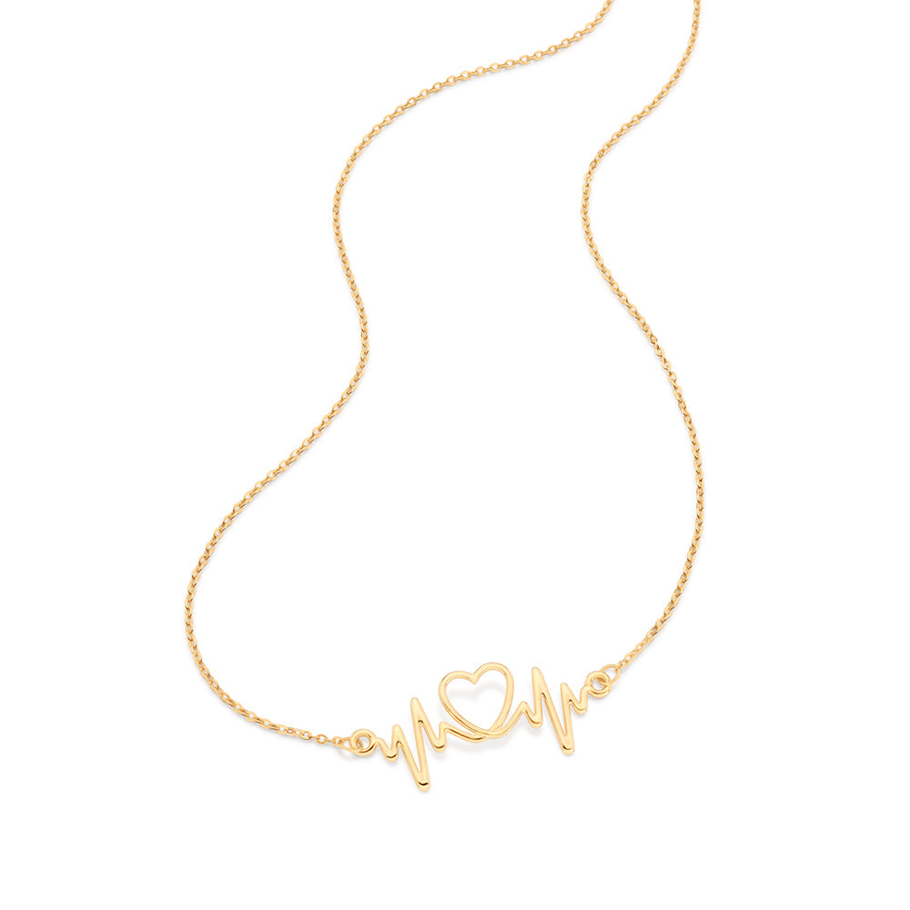 Gold plated necklace composed of a cable link chain with a heart beat pendant. size: 50cm - can be adjusted to 45cm.