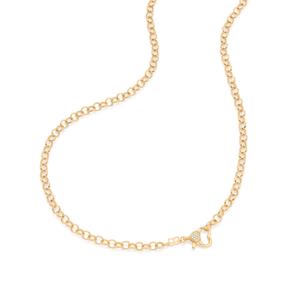 Gold plated necklace composed of a cable link chain with a clasp in the shape of a heart studded by twenty six white zirconias measuring 1mm each. size: 50cm.