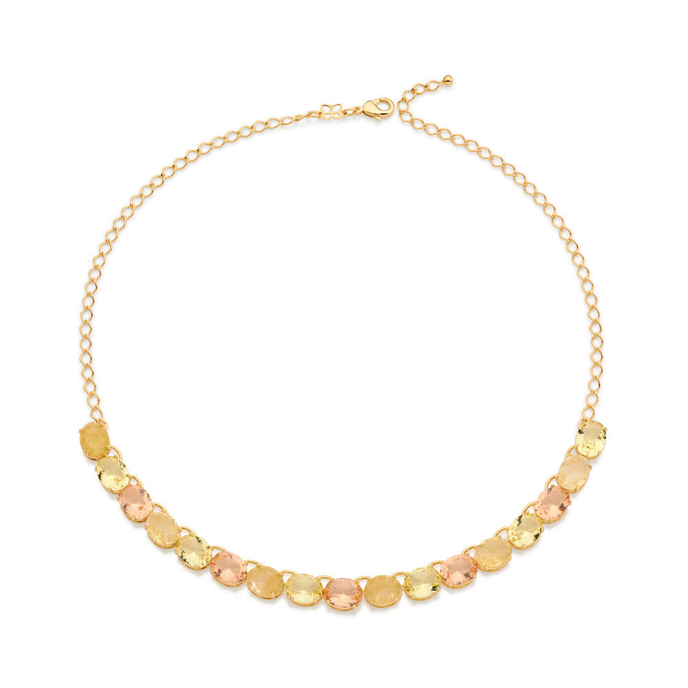 Gold plated, necklace composed of a cable link chain measuring 45cm studded with 17 yellow and pink crystals measuring 10x8mm each. size: 45cm. exclusive licensed jewelry of ""ana hickmann fashion jewelry"" collection "