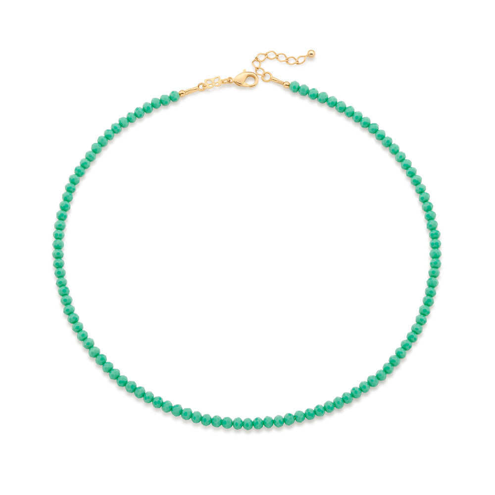 Gold plated choker necklace composed of 103 turquoise faceted crystals measuring 4mm each. size: 45cm - can be adjusted to 42cm (17.72in - can be adjusted to 16.54in).