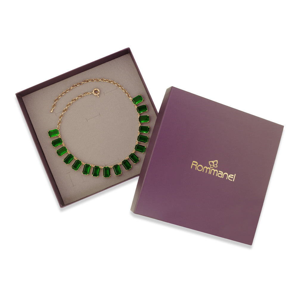 The bracelet features a synthetic green gemstone, carefully selected for its brilliance and vibrant color, complementing the gold tone perfectly.