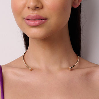 Gold choker with a hammered nail design studded by 30 zirconias measuring 1mm each. Size: 13.3cm (5.24in). Exclusive licensed jewelry of Giovanna Antonelli fashion jewelry collection.