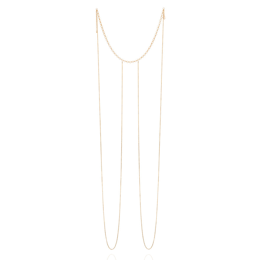 Gold plated, body chain composed of a cable link chain in two thicknesses. size: 42cm - can be adjusted to 37cm (16.5in - can be adjusted to 14.6in). exclusive licensed jewelry of ""ana hickmann fashion jewelry"" collection "