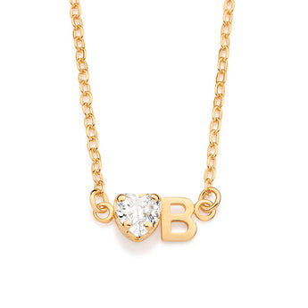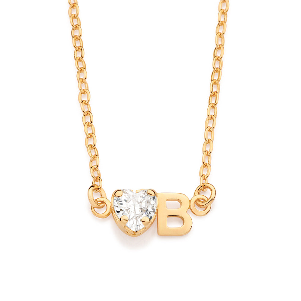 18k gold-plated necklace composed of a letter pendant and one (1) heart zirconia measuring 5x5mm. size: 50cm (20in) - adjustable to 45cm (18in).