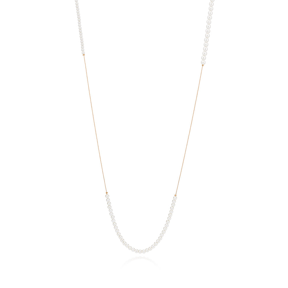 Gold plated, chain with pearls gold plated versatile necklace composed of a snake chain and 39 synthetic pearls measuring 4mm each, 31 pearls measuring 5mm each, and 44 pearls measuring 3mm each. size: 75cm (29.5in). exclusive licensed jewelry of ""ana hickmann fashion jewelry"" collection "