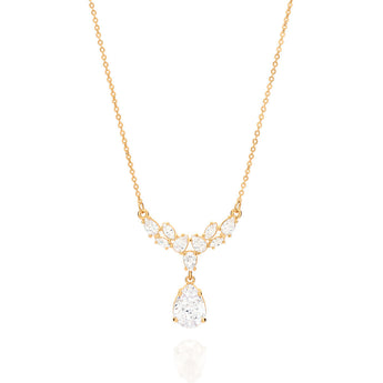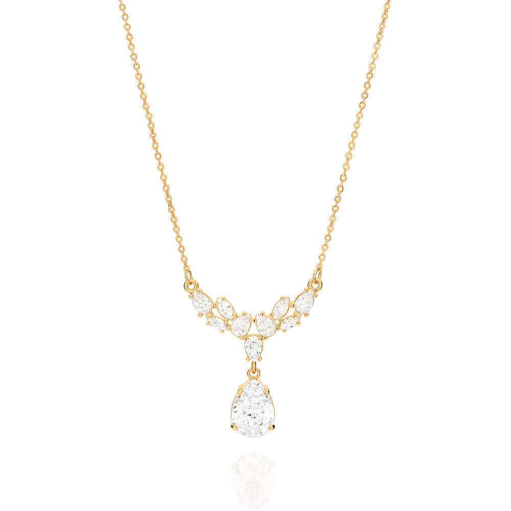 Gold plated necklace composed of a cable link chain studded with multiple white zirconias in various shapes. size: 45cm - can be adjusted to 42cm.