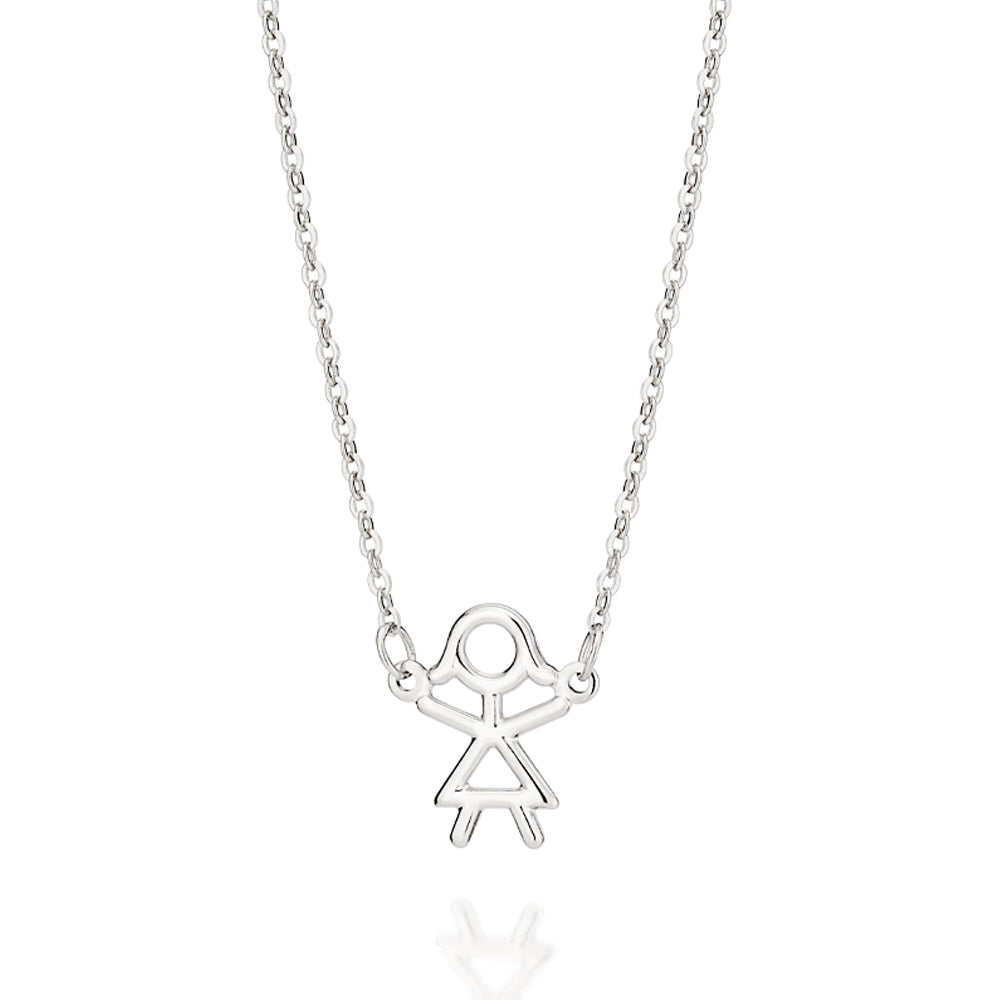 Platinum necklace composed of a cable link chain measuring 50cm - can be adjusted to 45cm - featuring 1 stick figure girl. size: 50cm - can be adjusted to 45cm.