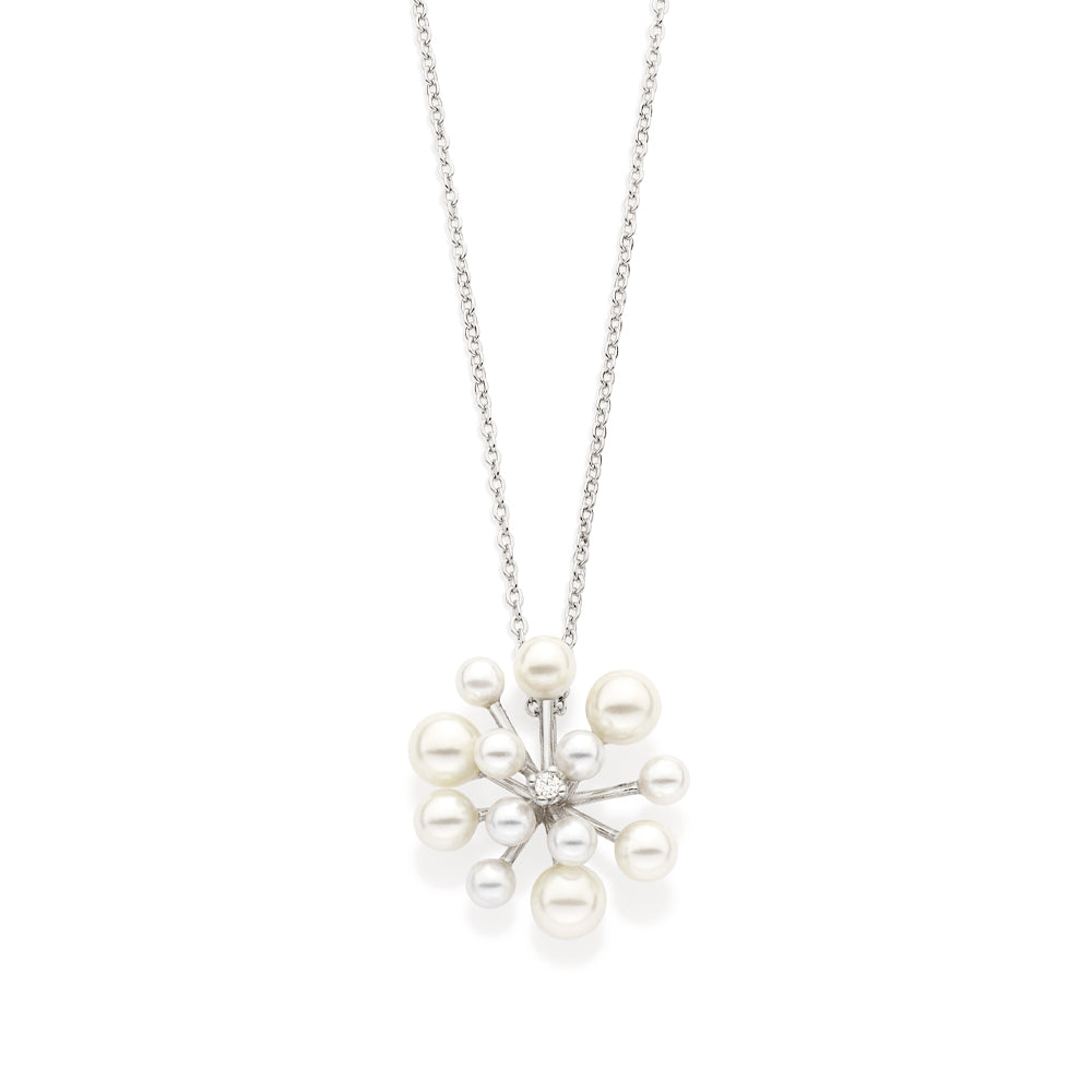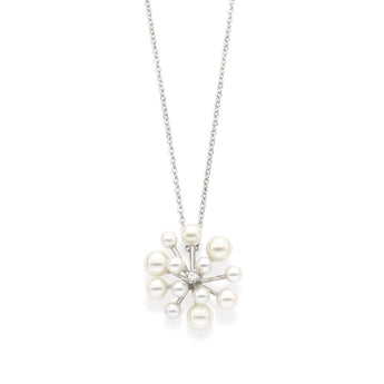 Platinum necklace composed of a cable link chain featuring a pendant composed of 13 pearls and 1 white circle zirconia. size: 45cm - can be adjusted to 42cm.