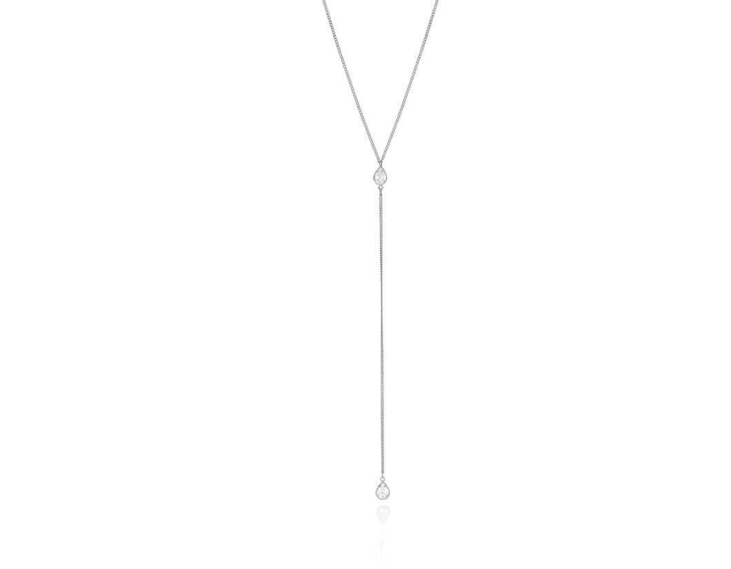 RHODIUM PLATED CHAIN WITH ZIRCONIA